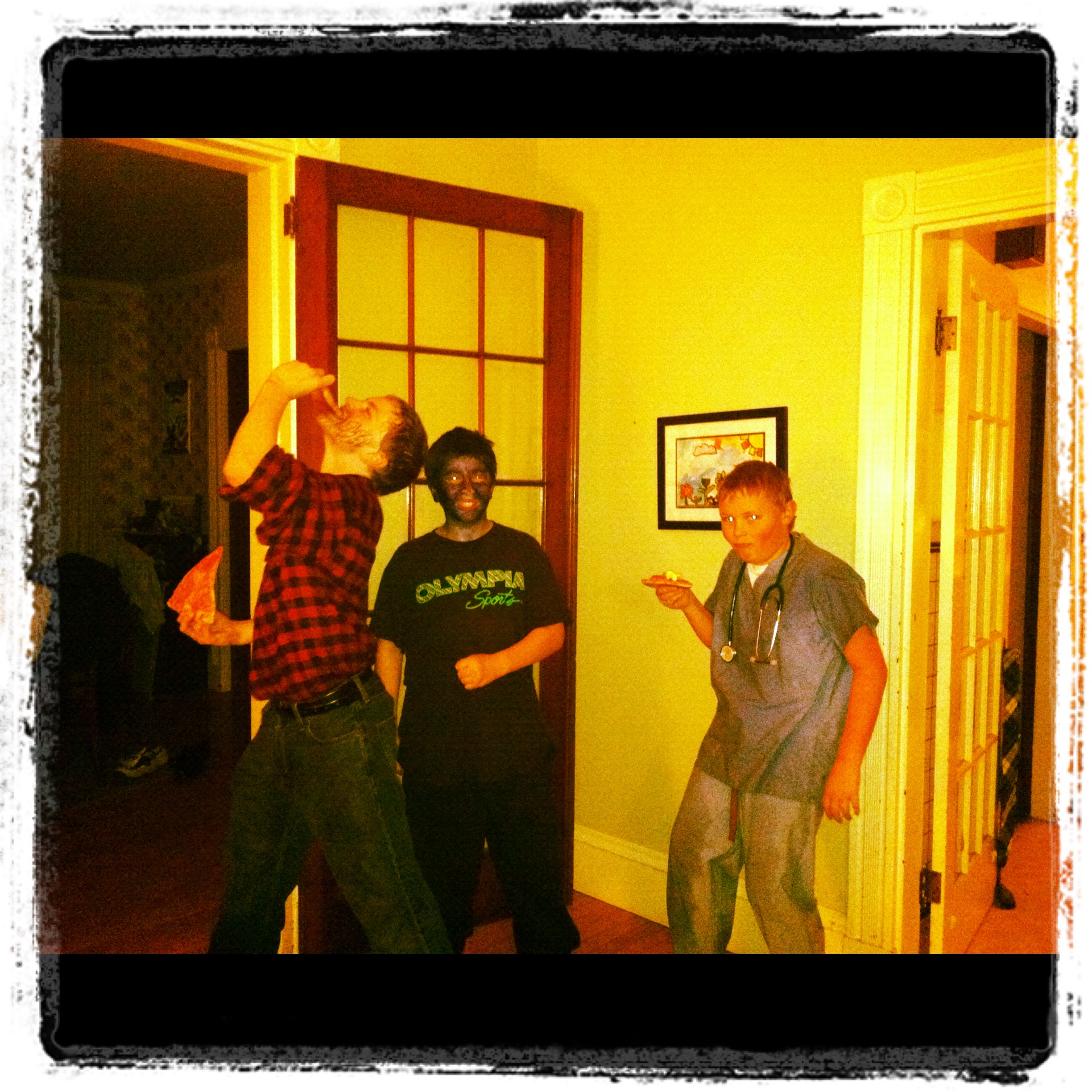 Anyway. I was happy to prolong the magic just one more year. We made pancakes and ate them standing up at the kitchen counter. My aunt and I tried to get the boys (one mine and one hers) ready, but it felt a lot like what I imagine herding wet cats would be like. The boys went out and maybe did more aimless walking around than trick-or-treating, I walked with another mother not necessarily trailing the kids, but you know, just being in the general area.