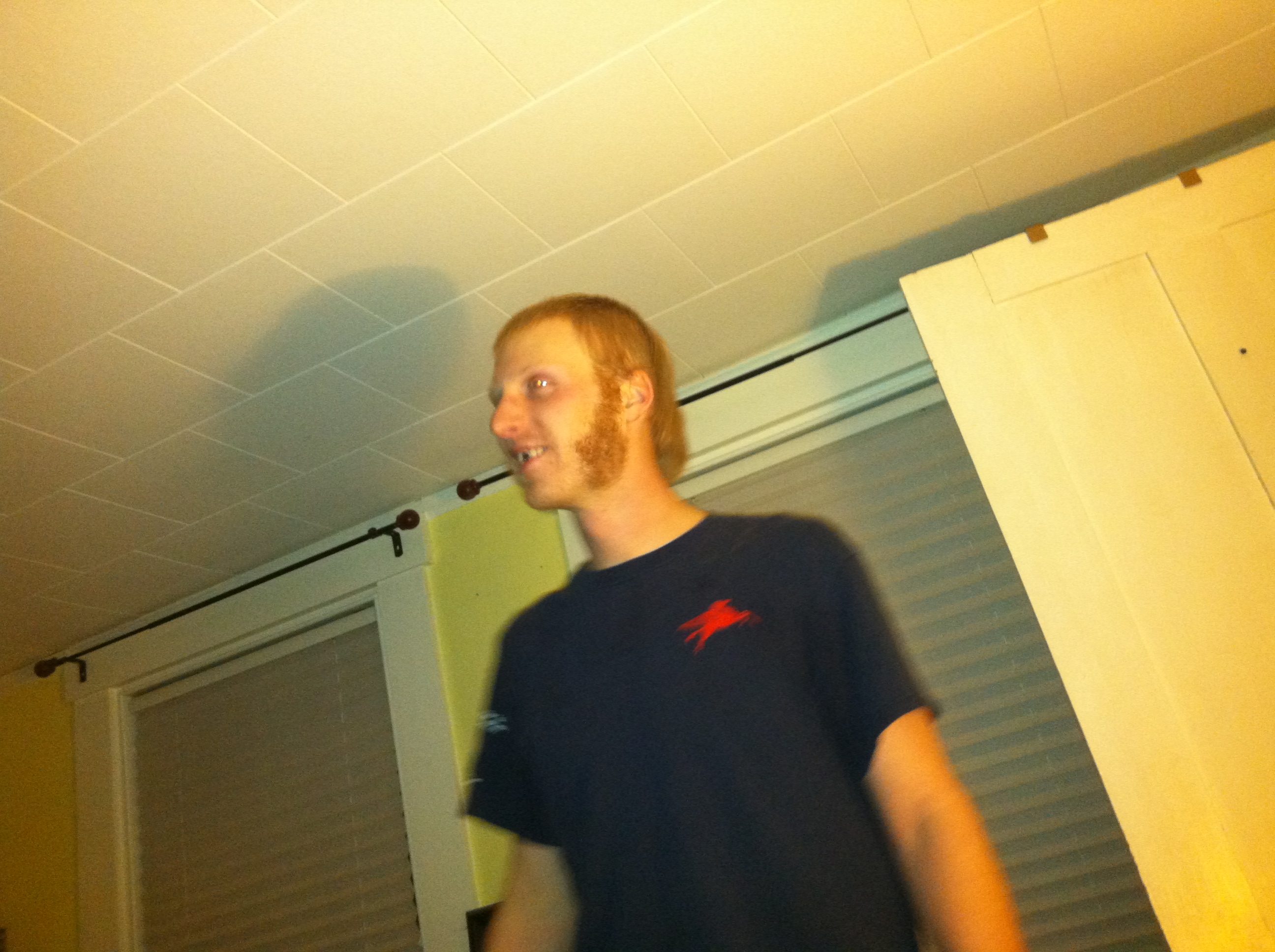 Matt grew his hair out all winter. This was fine until he decided to cut his own bangs one morning. Any woman who has ever cut her own bangs knows exactly what happened next. They sprung up. It looked as if he had either passed out by the fire and they were burned off OR he had passed out on the couch and had bacon grease in them so the dogs chewed them off. It was horrific. I couldn’t even look at him. When he finally agreed to cut his hair I went to bed, dejected, he had refused to just. go. get. a. fucking. haircut. He woke me up 30 minutes later with the joe dirt mullet and blacked out tooth. I went back to bed, sure that I would have to deal with Joe in the morning. Much to my surprise, I woke to find a nearly normal looking human next to me. I finally won. Heather-1, Matt- 87.